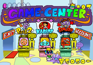 Tempo is a largely forgotten series of music-themed mascot platformers Sega put out in the mid-nineties, and Super Tempo is the least known of them due to being a late Saturn title released exclusively in Japan. One of its stages is a small game center, where you can invest money in three micro games with very generic names - "Karate", "Samurai" and "Pizza 2". The games are actually much funnier than the titles suggest.
