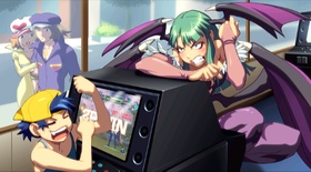 Not a stage in the game, but a location seen in one of the endings can be found in Tatsunoko vs Capcom. In Morrigan's ending, she is seen saying highly suggestive things to a minor, before it is revealed in the next image that she was actually losing against him in a fighting game, while two passers-by look at them with shocked faces as if they actually were engaged in unholy sexual acts.