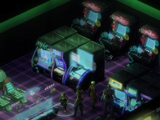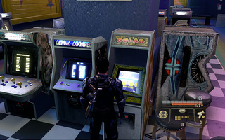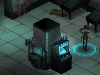 In your quest to save Berlin from impending destruction, you end up seeking out a mythical decker who supposedly has turned herself into a purely virtual being. So where do you meet her, in the Matrix? No, you go through hidden passages in the subway to enter a forgotten room full of decomissioned terminals, pinball tables and even a demolished phone booth. In the center stands an archaic arcade game machine, which is your key to your audience with your would-be informant. The next Shadowrun installment set in Hong Kong features an entire area of "vintage" arcade machines, next to an e-sports setup with the typical mind plug-in devices of the Shadowrun era. Once again none of the games can be interacted with. Talking to a NPC gamer that's hanging around there reveals a mention of the title "Tank Battle Europa", but there aren't any readable labels on the machines.