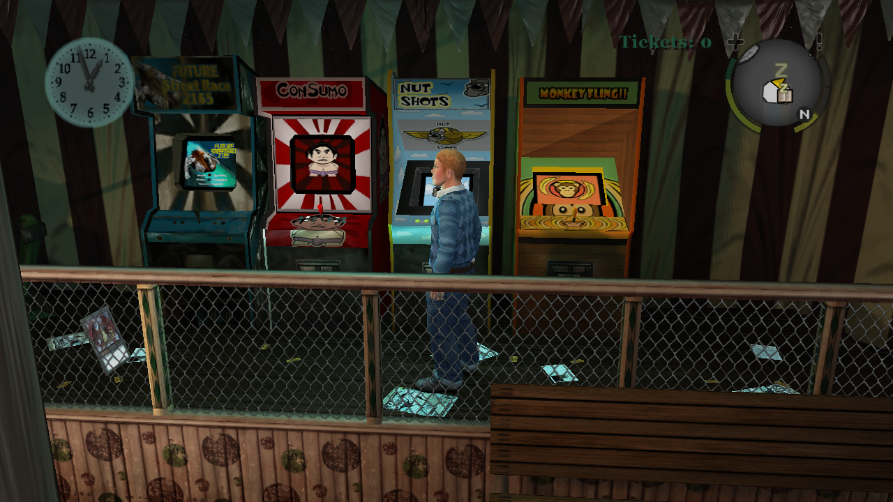Since Bully is essentially Rockstar Games' teenage version of Grand Theft Auto plus a ton of mini games, it inherits San Andreas' affinity for playable arcade cabinets. One game is right in juvenile delinquent Jimmy Hopkin's dorm, but there are more locations to find other games. The prize shop at the carnival, which becomes available in chapter 2, almost qualifies as a proper game center, as it has all five machines in the game.