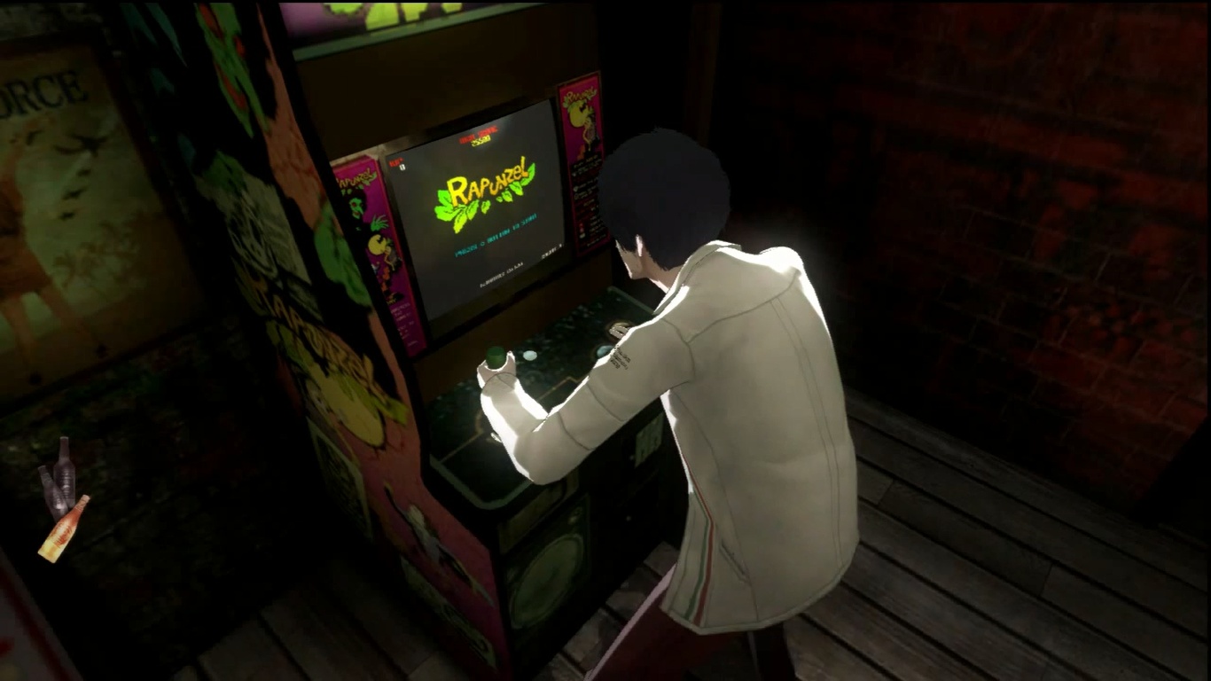 At this point, this list probably has more single arcade machines in locations they're peripheral to rather than dedicated game centers, and Catherine adds yet one more. In the Stray Sheep bar, protagonist Vincent Brooks finds a game called "Rapunzel", which is suspiciously similar to his nightmares that form the main game, only limited by turns instead of time. The cabinet art is especially lovely designed in period-appropriate style, and even shows a bit of wear to make it look more natural.