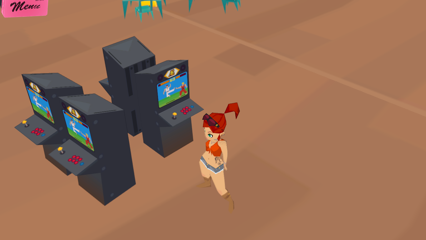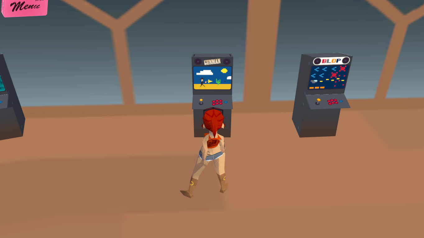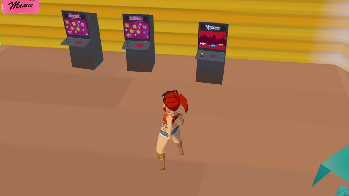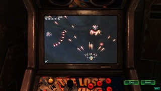 The main attraction is the top-down racing game "Future Street Racer 2165", which actually has astonishingly high production values, running in a 3D engine. It also has a sequel in a cockpit cabinet called "Future Street Racer 3D", which is exacly the same except for the perspective, which is switched for an over-the-shoulder camera. Both variants are quite rad for tiny optional distractions.