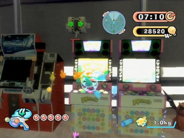 Akihiro Ishihara's frantic hunt for little critters features a kind of amusement park with mission 26, which has a few Bemani cabinets in a corner: Guitar Freaks V3, Beatmania IIDX and Pop'n Music, with animated gameplay screens as you switch them on. Like almost any object in that game, you can (and have to) fling them around with your beam to reveal the Elebits hiding behind, under or inside of them.