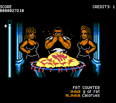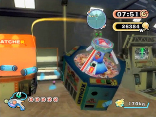 Many of the games are cheap-looking retro knock offs like in San Andreas. Nomen est omen in "Monkey Fling!!", and so you play as a monkey to fling poo at spiders in a Space Invaders setup while trying to catch bananas that allow you to produce more poo. "Nut Shots" is a horizontally scrolling shooter starring a flying squirrel. The most innovative of this bunch is "ConSumo", where you walk around an arena as a tiny sumo wrestler, who has to catch food that flies across the screen while avoiding bad food, pushy sumo opponents and deadly globefish. The interesting part is that the game increases the difficulty each level by making the sumo wrestler grow bigger.