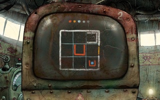 Machinarium is filled with mini games that often reference classic video gaming, like the little LCD type display where a key needs to be maneuvered past scrolling obstacles to open the in-game walkthrough. There is also an arcade game room where the little robot hero can ride a bicycle to power up a variety of machines. The first one is a playable Space Invaders clone on a very narrow display. Machine number 2 is a clever little puzzle game where you move boxes by stepping into them from their opened side. The third and final machine unfortunately breaks down as soon as you switch it on.