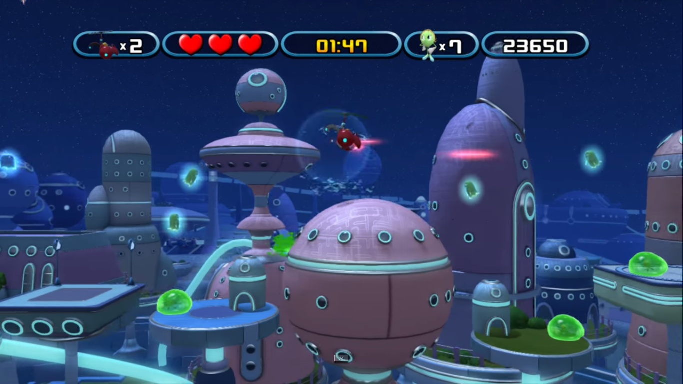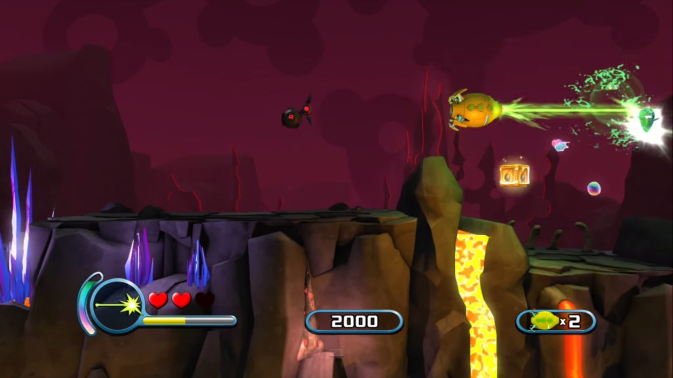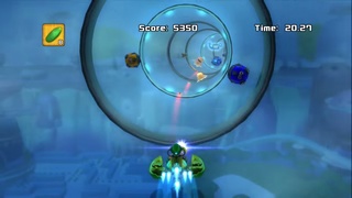 Lemon Blaster is a sidescrolling shoot-em-up, a low-stress alternative to games like Gradius. Tanks a Lot (for which you have to get pineapples because you steer a pineapple tank) sends you into a maze viewed from a third-person perspective, where you have to find and blast waves of ghosts. Cherry Copter Rescue is a variant on the arcade classic Defender, and Pacerchini Panic resembles the round tunnel races from F-Zero X, but is more about shooting obstacles out of the way than actual racing.