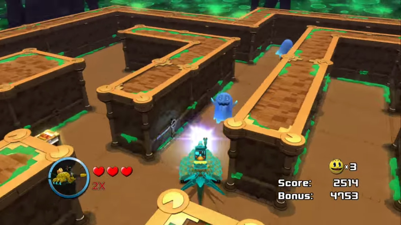 Pac-Man returns with yet more arcade machine appearances. Unlike the Pac-Man World series, in the recent Pac-Man and the Ghostly Adventures (known as Pac-World in Japan), they are not made to relive the ancient original game. The game takes the yellow muncher to a Jetsons style future with lots of spheric architecture where apparently all the old Pac-Man arcade cabinets have been thrown out, so they feature four entirely new mini games based on fruit themes, which Pac-Man has to gather to access them.