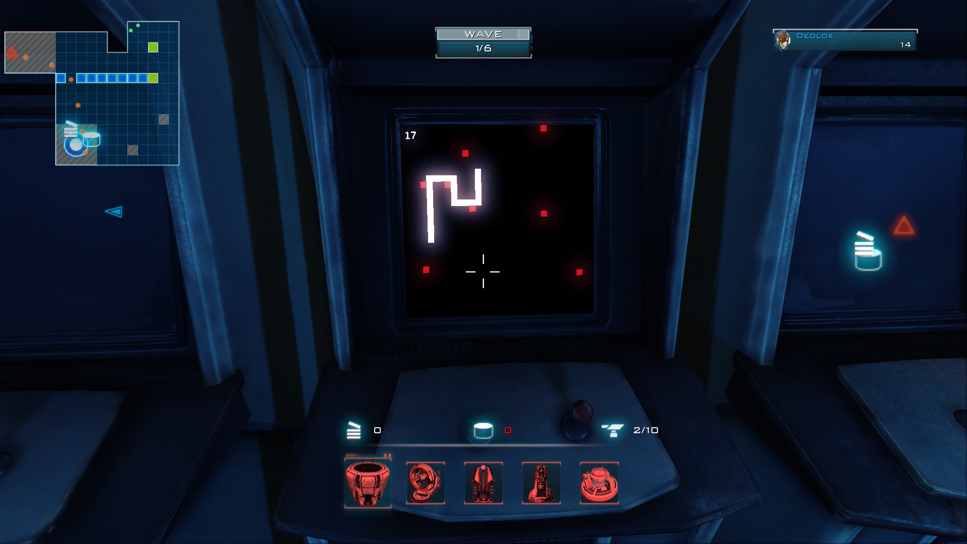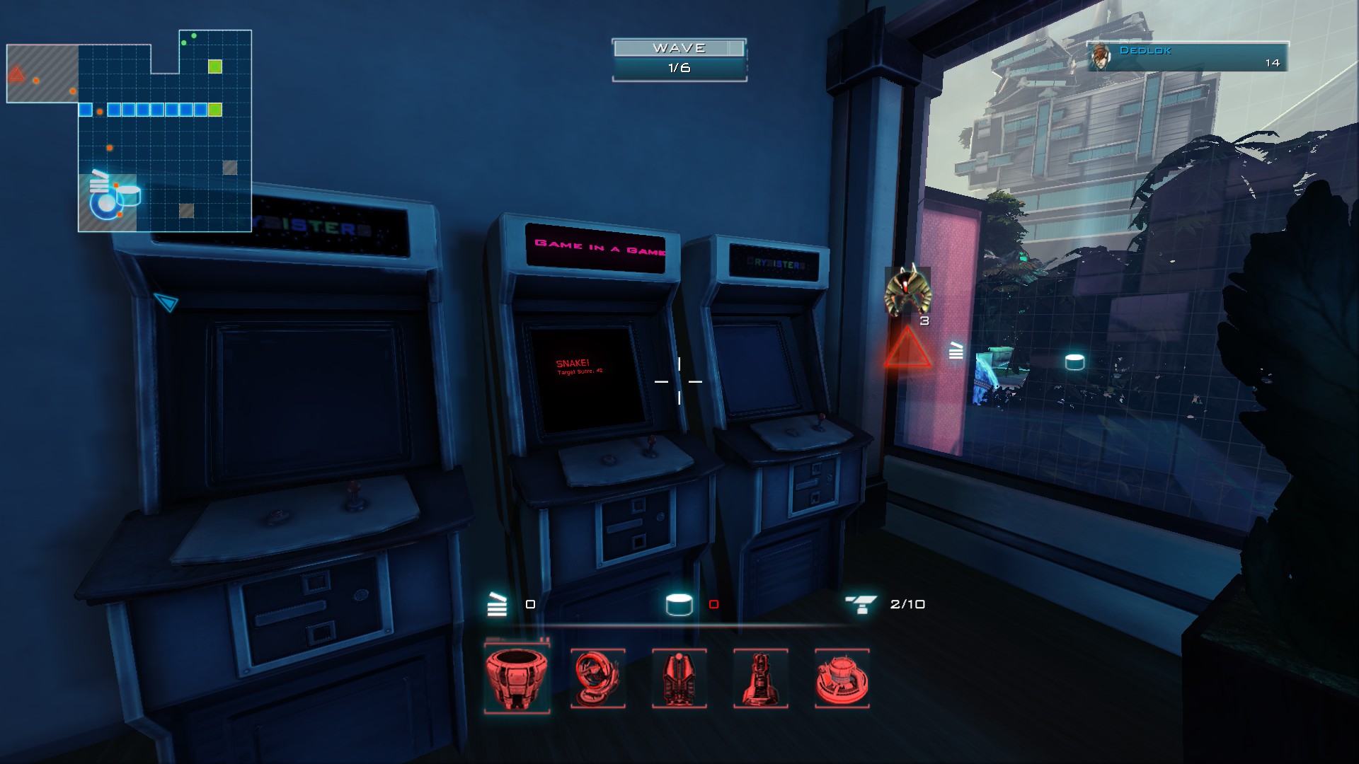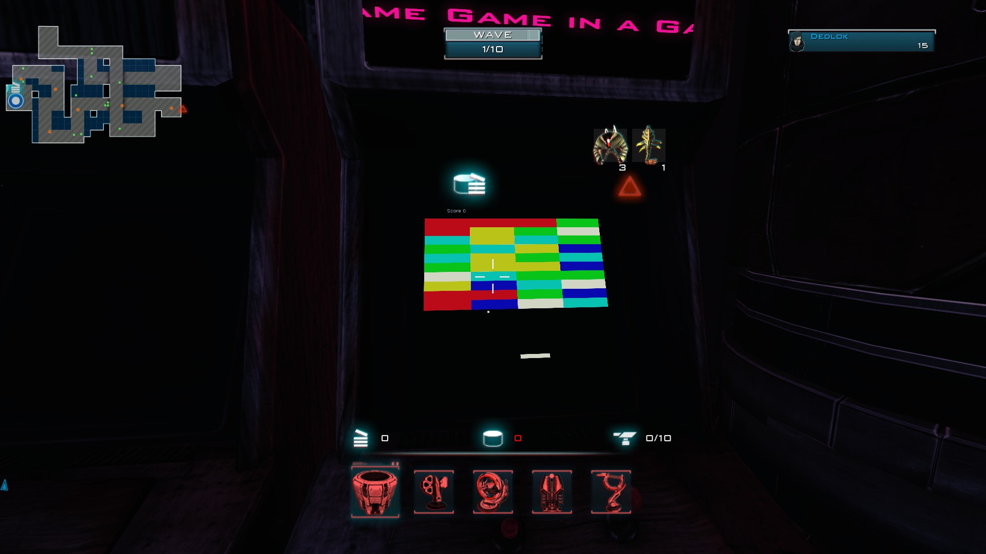 Sanctum 2 is a tower defense FPS hybrid, but it includes several other games that can be played on computer screens throughout the campaign. Two of these are presented as arcade cabinets at different locations. Both machines are labeled "Game in a Game", but when you start them the first is revealed as a variant of the old Snake game known from the old Nokia mobile phones, aptly titled "Snake!", while the other is a Breakout clone called "Take Out". Playing both of these games is awarded with an achievement.