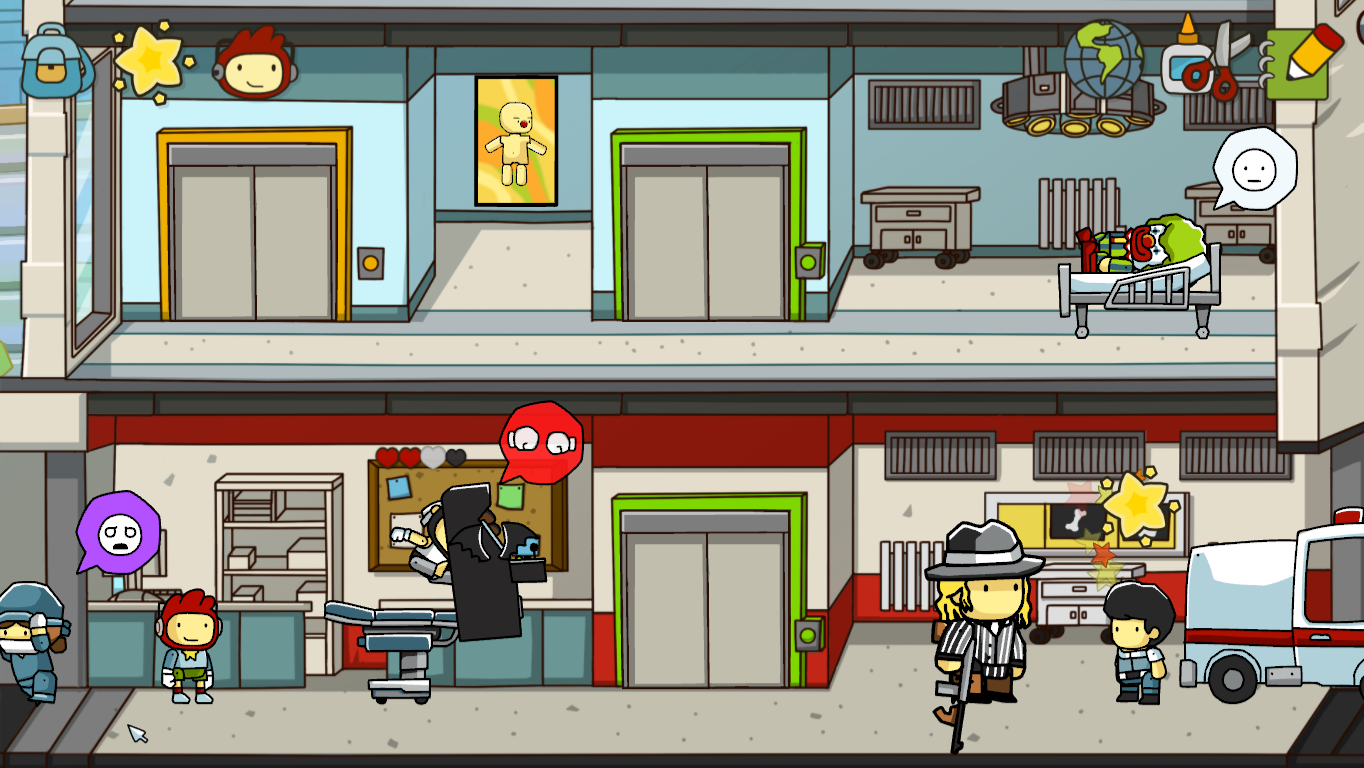 Scribblenauts is all about making things appear or transform by scribbling words in a notebook. Naturally, you can also scribble in as many arcade and pinball machines as you like. The pinball machine only makes some music, but when you "play" the arcade machine, the entire game switches to a pixellated low resolution. You can also give it wings, make it eat humans and fight against the mafia, because this is Scribblenauts.