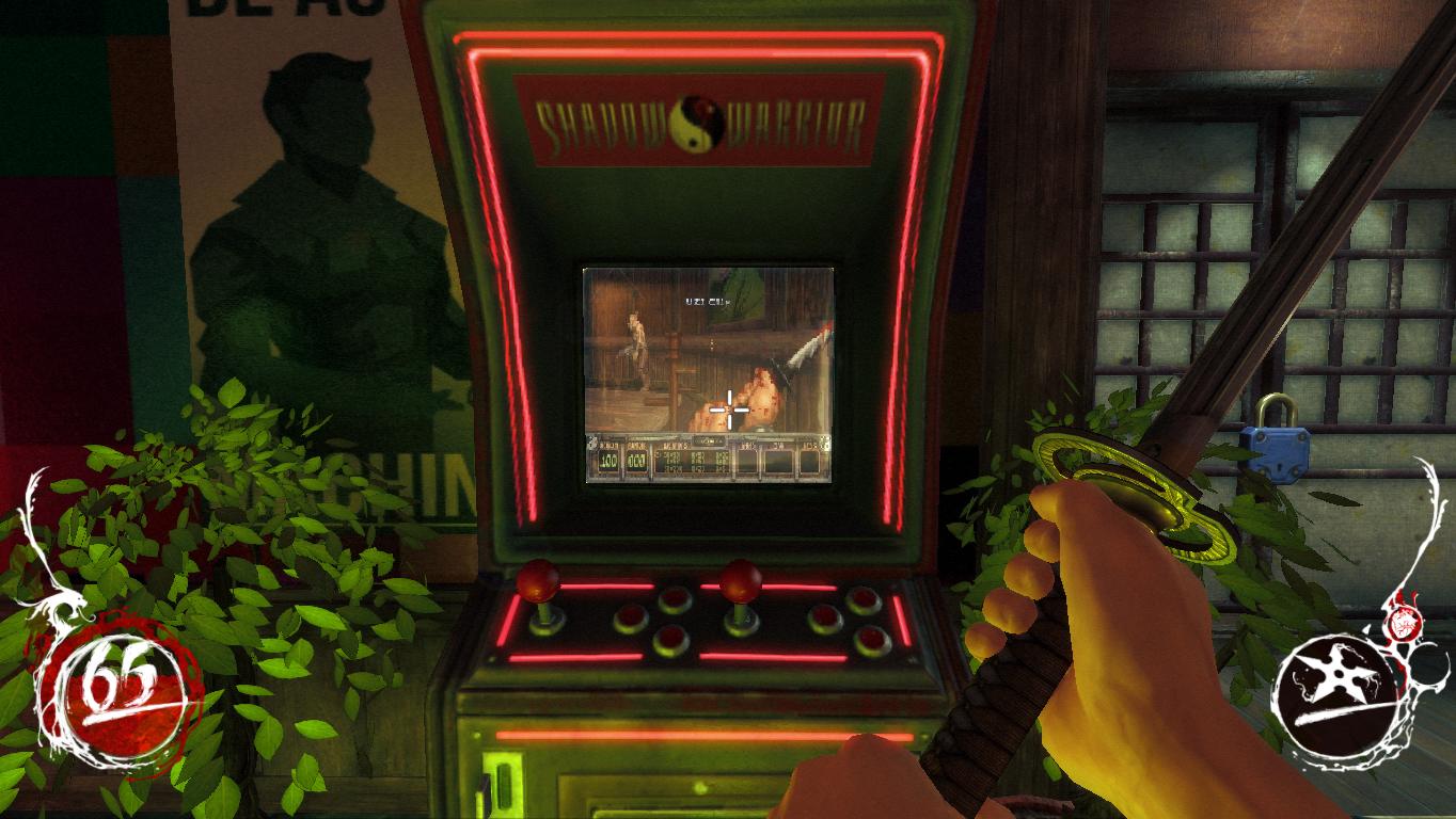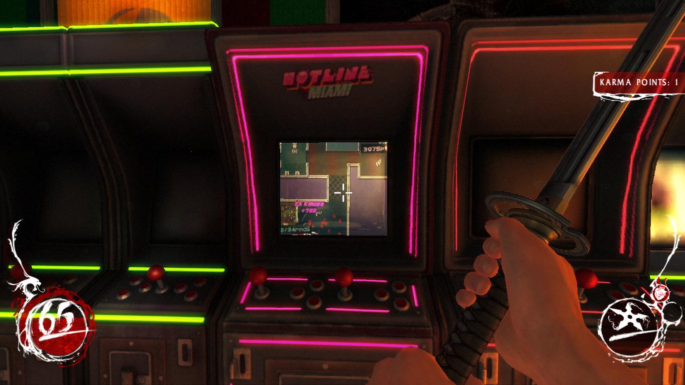 Flying Wild Hog's remake of the old, racially insensitive 3D Realms shooter features quite a lot of arcade machines in it, but most of them are shut off. The few that actually run show Hotline Miami, Serious Sam, Hard Reset and the original Shadow Warrior - all games that really exist, like Shadow Warrior published by Devolver Digital, but none of them was actually for arcades. The games cannot be played, but you can throw in money to hear music from the respective game.