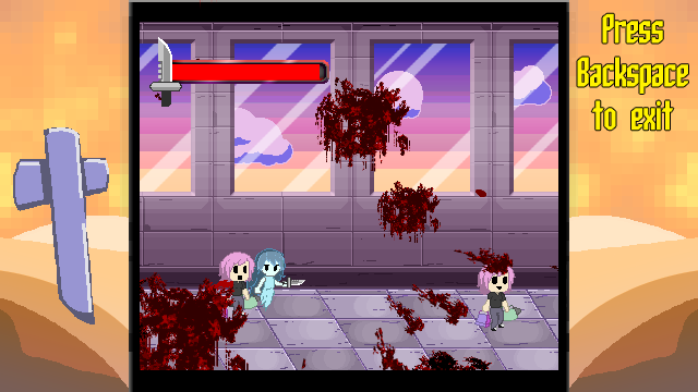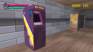 Spooky's House of Jumpscares is a rather tedious arrangement of random rooms where not a lot is happening - at least for the first 200 of 1000 rooms. However, it's a free game so there's not much to complain. One of the rare highlights is the arcade that can be found randomly, just as the other rooms. While the interior decoration is just as spartan as the rest of the game, there are two playable machines - a Pac-Man clone with terrible mouse controls called "Mrs. Spook", and the sidescroller "Mall of the Spook" where you play as the ghost and rush with a knife through passengers, whom you have to slaughter to avoid running out of blood.
