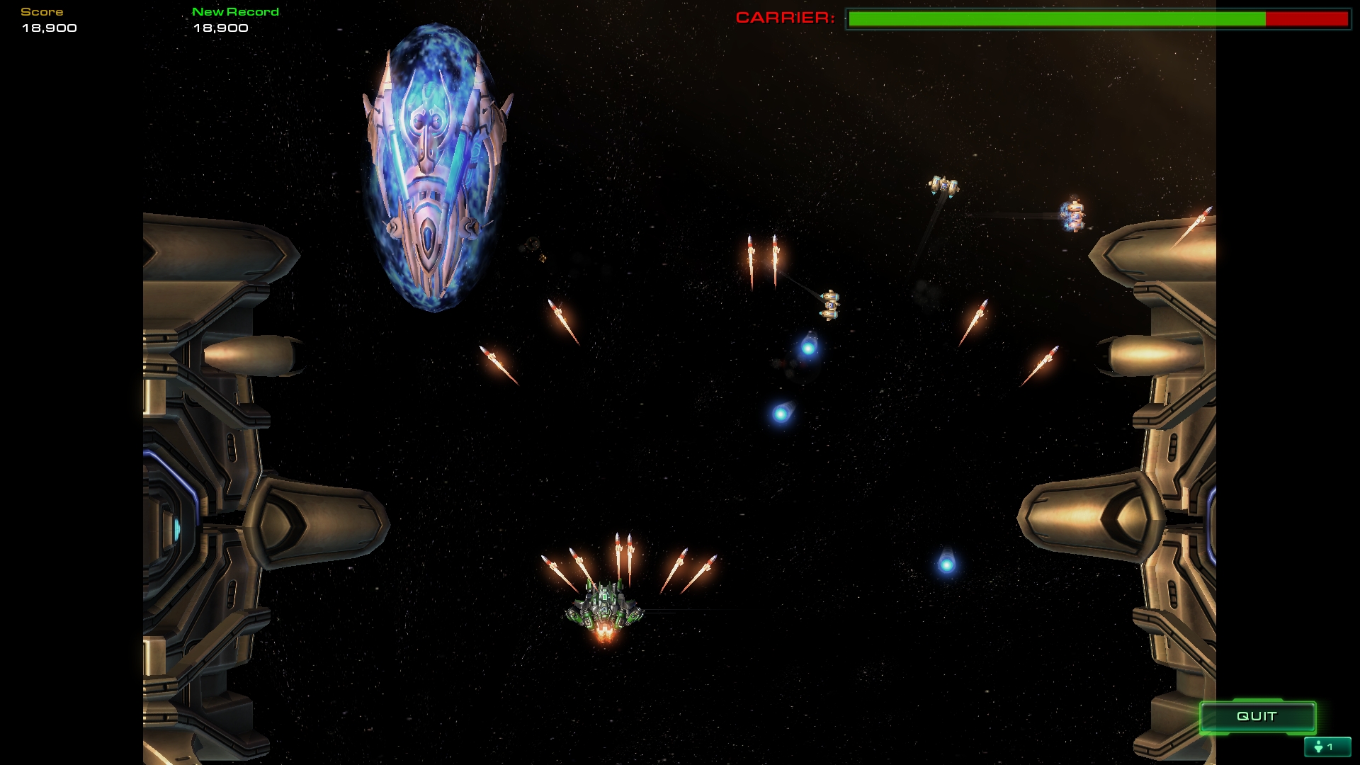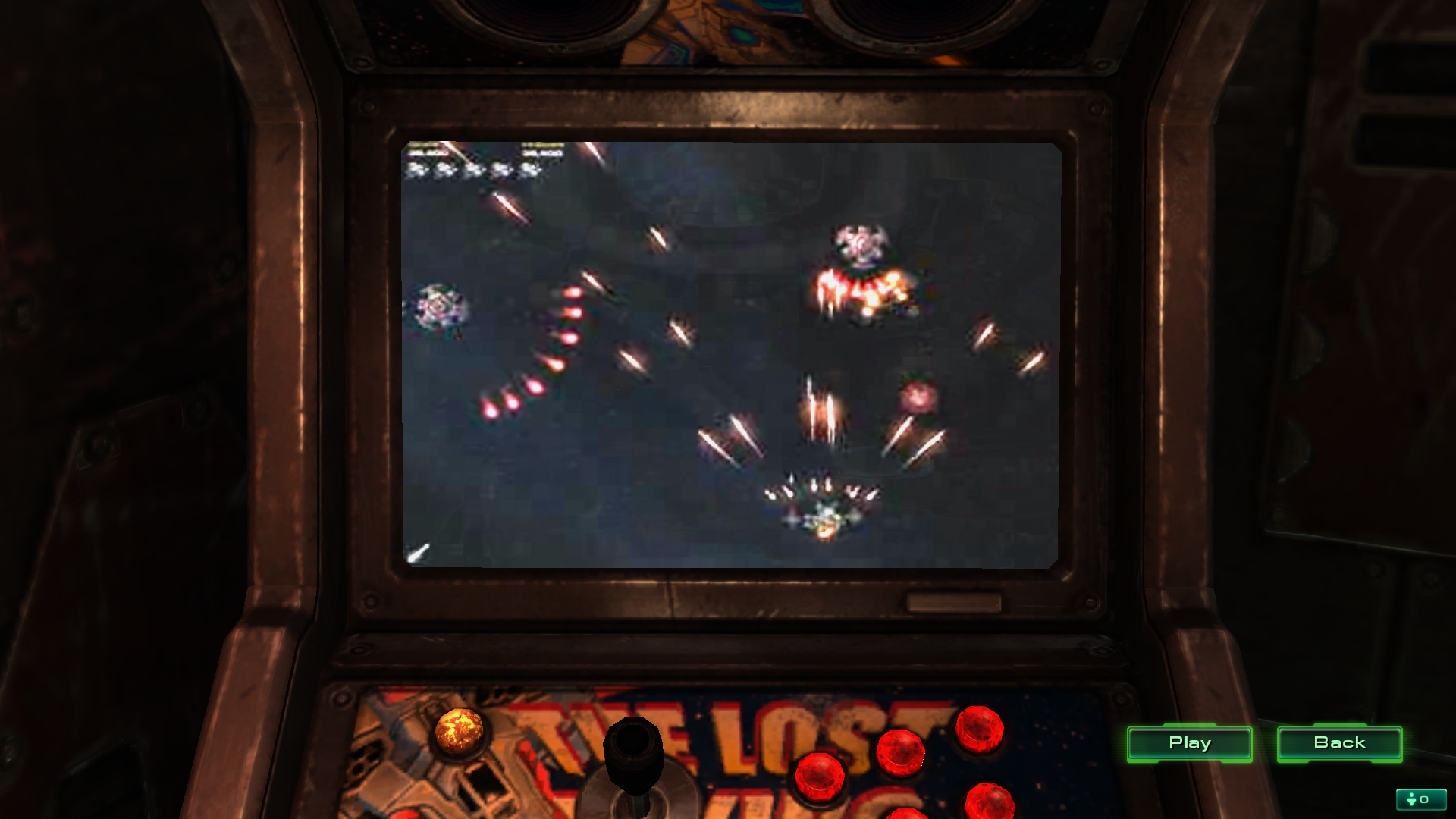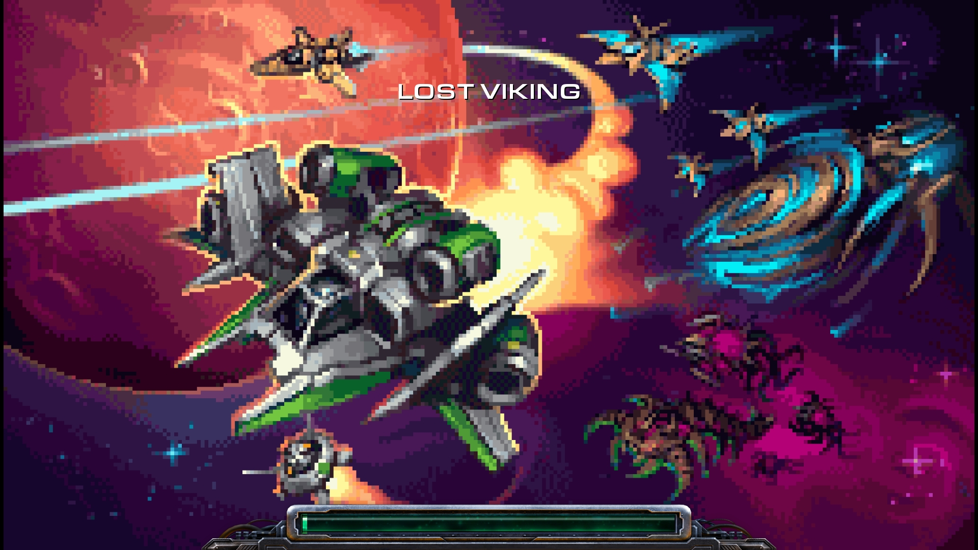 The cantina in the campaign mode of Starcraft II's Terran edition features a lone arcade cabinet called "The Lost Viking". Despite the title, this has nothing to do with Blizzard's own puzzle platformer The Lost Vikings, but is a vertical shoot-em-up built with the Starcraft II map editor. The title screen teases a pixel art style, but the game graphics are all polygonal.