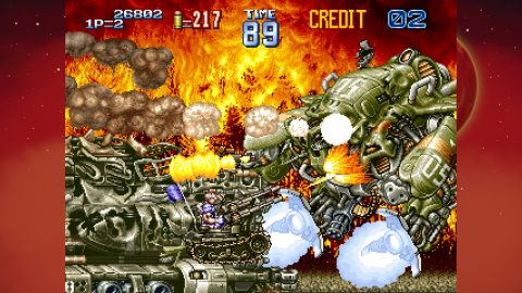 This is the real business. GunForce II is such a monumental improvement on its predecessor that it’s hard to believe they’re related. Characters move smoothly, weapons are satisfying, and things explode nicely. You can also see the roots of the Metal Slug series take hold here, with a similar visual and music style. The vehicles from the original GunForce have evolved into even cooler machinery that are clearly the predecessor to the Slugs. Rather than rescuing bearded prisoners, you save damsels in distress. There aren’t any grenades, but instead your character carries two guns even in their default state, allowing you to aim at additional angles.