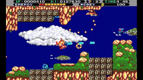 This one is quite a bit easier than other Irem shooters, especially owing to the two-player simultaneous play and the instant respawn. But it’s still a colorful game that benefits from Irem’s typically excellent pixel artwork.