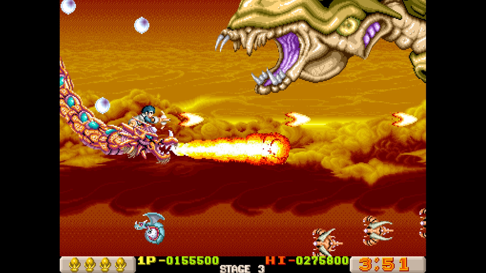 Much like the previous two volumes, Irem Collection Volume 3 includes three Irem arcade games – Dragon Breed, Mr. Heli, and Mystic Riders – into one shoot-em-up-filled package.