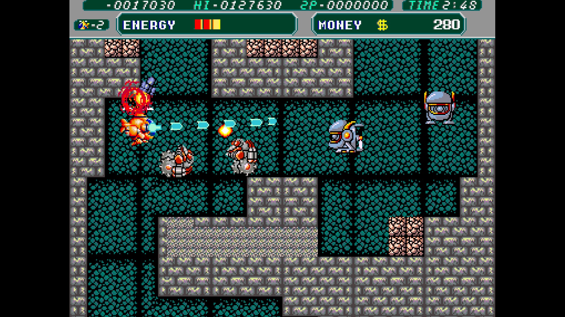 This one is quite a bit easier than other Irem shooters, especially owing to the two-player simultaneous play and the instant respawn. But it’s still a colorful game that benefits from Irem’s typically excellent pixel artwork.