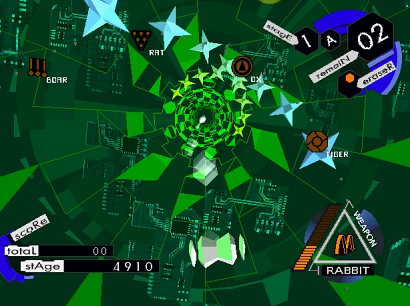 Each of eight levels is divided into four sub stages (A, B, C, D and Boss Fight). When the level guardians are reached, game scheme switches from its tubular form to that of a circular rail drawn around the enemy, where greater shot precision is often required. Internal Section‘s gameplay is utterly unique, allowing the player to instantly choose between twelve different shot types, each of them based on a Chinese zodiac sign: apart from dodging bullets and other obstacles, the key to success lies in the use of the appropriate sign for each situation. Far from a hardcore shooting game experience, Internal Section is all about the experience and aesthetics – rather than superhuman skills – with scattered checkpoints and infinite continues that make it a short, albeit extremely enjoyable video game.