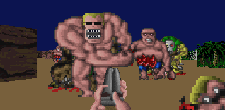 Death is pretty much everywhere, obviously. There are roughly half a dozen zombie-types who all act the same way, but their quality is roughly the level of a Wolfenstein 3D fan mod. Although they have no distance attacks, they do attack in great numbers. Mowing down legions of them with a shotgun and watching their absurdly overdone death animations is briefly amusing, but there’s little feedback to indicate that you’re taking damage, especially from behind, resulting in many situations where you appear to die out of the blue.