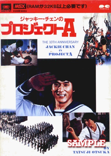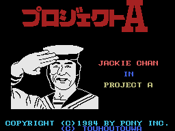 Pony Canyon made their first real efforts of porting Chan’s amazing action into a video game with Project A, based on the 1983 movie with the same name. In the movie, Chan plays Dragon Ma, a marine police officer in Hong Kong. The seas of Hong Kong have been infested with pirates, and Ma leads his squad to stop the swashbucklers once and for all. However, because of the tension between the Police and Marines, fights between them breaks out and Ma is forced to go on his own to stop them, and eventually gets the support from his comrades and bitter police counterparts.