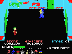 The game uses the same sprites and style as The Protector, released a few month prior to this game. In this game you control Jackie going through a large building beating up baddies and snakes. The goal is to walk around, finding items to unlock doors, and finding the boss. As you go on, the buildings get bigger and the game drags on. Most the rooms look largely the same apart from a few color changes and decorations, and the enemies you face are loose snakes, punk thugs and bald musclemen. After a few minutes, the game gets extremely repetitive, and you’ll find yourself pretty confused over the items and the shoddy collision detection. While it uses the same style, The Protector was a much more enjoyable game, as it had a much more simple approach, and this game tries to be more complicated for no other reason than to differ from the other releases.