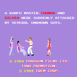 The only differences between Kung-Fu Master and Spartan X is the copyright notice and a small line in the opening demo which reads "KANFU" instead of "Kung Fu".