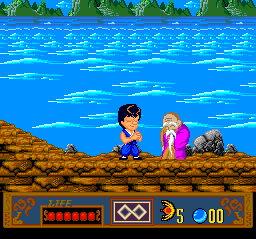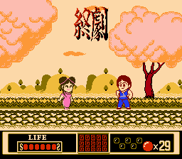 By the end of the '80s, there was one undisputed king in the world of video games, and that was Nintendo. With the Famicom they had taken the world by storm, and it seems only natural that Asia's biggest superstar and Japan's favorite good guy would eventually land his own title on the console. In 1990, Hudson Soft picked up the licence to his likeness, and they set out to create a Jackie Chan worthy game on the system. Unlike all the other games, this was not based on any particular movie, but took inspiration from different ones.