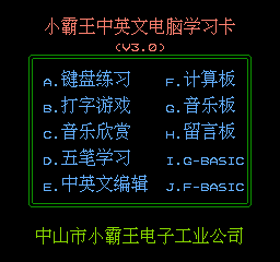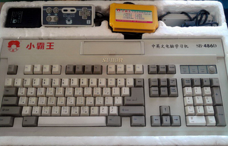 The system itself is not much to write home about as expected with Famiclones. SB-926 comes packaged with the keyboard unit, 2 controllers and a multi-cart game. The keyboard unit runs a custom Subor operating system which runs BASIC and MS-DOS. This allows for both writing of own small software as well as running prepackaged applications. Despite being BASIC, it along with MS-DOS is severely gimped meaning that most of the BASIC written software with the Family BASIC language is not compatible. The plastic on both keyboard and the controllers is notoriously cheap, and speedy typing will lead to the destruction of the keys within short time. It also comes packaged with several Chinese word tools and simple math software to go along with its learning system approach. Game compatibility remains similar to the other Famiclone systems though Subor is known as one of the better multi-cart producers, rarely resorting to repeat games even when in the hundreds of titles range.