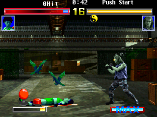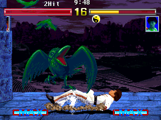 The oddly colored fighters also puzzles the mind a bit. Lau is now colored in red, with blue skin and white force fields, making him a nice walking, talking Norwegian flag. Yeung has a She-Hulk thing going and is now always accompanied by 2 eagles which she send to attack. Thorsten has glowing eyes and zombie-like skin, while Sam Wong, Kim-Peree and Jackie are the only characters with human complexion. No explanation is given as to why the characters suddenly look like they do, and it doesn't really add much to the game, except for Yeung's eagles.
