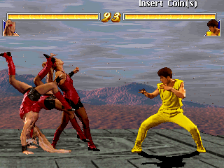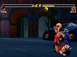 The fatalities are probably the worst part of this game. Like Mortal Kombat this game lets you set up a deadly final blow after defeating your opponent. This is done similarly to Tattoo Assassins, where anything you do be it a punch or a special move will trigger a fatality. If you throw your opponent they will bounce around the screen like Popeye just socked them and when you do a hard kick, they will fly into the screen, breaking it in the process. It's all very cheesy and cheaply done, and you see almost immediately that it seems very last minute and out of place. This same fatality system was used by Kaneko in another arcade game they put out titled Blood Warrior, which also utilized digital actors.