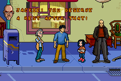 There are worse games out there obviously and for GBA standards the game runs quite smoothly even with the large sprites. But apart from being titled Jackie Chan Adventures, it could just as well been called "Corey Feldman's World Tour," because there's little Jackie Chan about this game to be found.