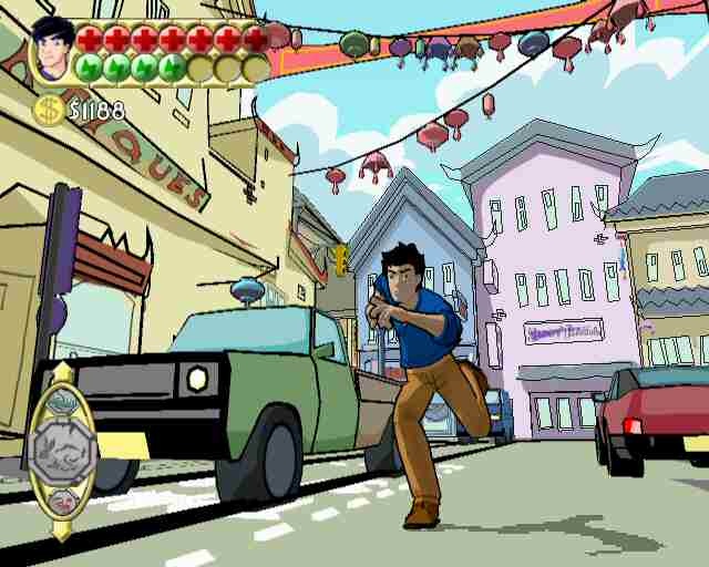A funny little trivia note: during the opening cutscene when Jackie is eating, you'll hear a song played over the speakers. This is a song sung by Jackie called "Dan Yuan Hua Chang Zai" ("I Wished The Flower Could Never Fade") from his album My First Time released in 1992.