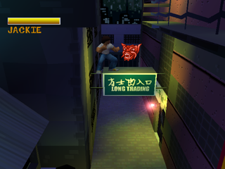 While the brawling works quite well, it's a different story when it comes to the platforming. Like Crash Bandicoot or Donald Duck: Goin' Quackers, the camera is always positioned infront of you. When you run right to left, this isn't the biggest of problems but in many cases you are required to jump inwards or outwards from the screen. This creates some very fustrating moments where it's damn near impossible to calculate the proper distance of the jumps and missing them often leads to instant death. You'll encounter this problem the most in the Waterfront and Sewer sections, where you are required to jump on floating platforms in the water, and most times, you'll find yourself overshooting your jump. Jackie's jump is also not the most responsive feature in this game, which can be equally as confusing. As you press X to jump, there's a split second delay and the height is preset depending on the length of your press. That means when you are in dangerous situations where you find yourself jumping from falling platform to platform you'll most likely be pushing buttons fast, and suddenly Jackie will do an extremely short jump which completely misses the target and sends you to instant death. This problem was very common in 3D platformers in this era.