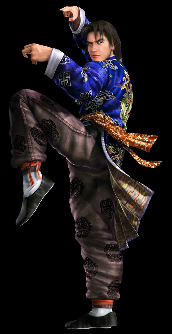 The most famous of the Jackie Chan inspired characters however would be Tekken's Lei Wulong. Lei Wulong is a Hong Kong super cop who uses the Five Animals Style and Drunken Fist techniques. His appearance, backstory, behavior and fighting style are all heavily based on Jackie Chan, much like the Law character being based on Bruce Lee. Lei's ending sequences often include several nods to scenes from Jackie Chan movies.