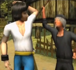 The game revolves around the main character Chan and his kung fu teacher. You'll be running around villages, the woods of the new territories and castles as you battle multiple onscreen opponents. The entire game is modeled after Drunken Master, one of Chan's most famous movies. In fact all the art is made to look exactly like it, just look at the comparison: