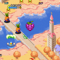 There’s Bill and Lance from Contra, Goemon, Getsu Fūma from Getsu Fūma Den, Richter Belmont, that guy from Meikyuu Jiin Dababa, a Snatcher, and that guy from Battlantis. There’s also a character from Yie Ar Kung-Fu, but it doesn’t do anything to specify whether it’s Oolong or Lee Young. I would guess that it’s Lee, but that’s strictly because he lacks a shirt. Strangely enough, the non-human characters that have been humanized. Appearing, in human form, are Moai Head, Blue Option, Pink Option, Vic Viper, and Lord British (all from Gradius / Salamander), and even Sparkster. Also, that Battlantis guy (called Spel Attlantis here) and Sparkster are obvious tributes to Spel Delfin and Hulk Hogan, respectively.