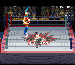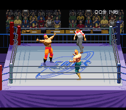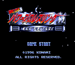 As its title would suggest, Jikkyou Power Pro Wrestling ’96: Max Voltage was released in 1996 by Konami for SFC. It was an obvious attempt to cash-in on the immense popularity of Fire Pro, so it’s a pretty shamelessly blatant clone of that series. Still, it’s executed as such an extraordinarily high level that it’s probably the best non-Fire Pro wrestler available for the console, and it brings enough to the table that there are several reasons to play the game even if you already have the Fire Pro entries that were released for the platform.