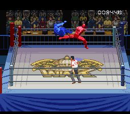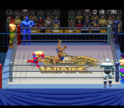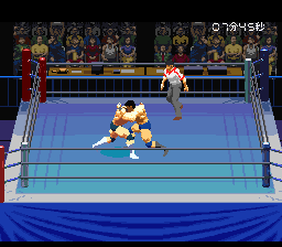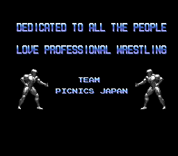When you start up the game, you’ll notice that the first screen that you see says “dedicated to all the people love professional wrestling”. Horrible English aside, this is reminiscent of that message in the Gameboy version of Parodius Da! that says “We love Gradius too”. When you play the game, you’ll get a sense that this message is very genuine – it really seems like it was made by people who have a very authentic fondness for professional wrestling, and that fact is displayed as much by its presentation as it is by its gameplay.