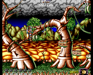 The title can be a bit confusing. This isn’t like with TMNT 2 where it was a port of an arcade game onto the home console system, but rather it refers to the game itself being more straight forward and emphasis on run and gun action. Due to the technical differences between SNES and Genesis, there was no way to do the Mode 7 effects as well as not being able to do the parallax scrolling on the level SNES could so Loriciel decided to yet again rebrand and retool the game. While the first stage is more or less the same as the other games, there are many additional shooter stages to make up for the loss of the overhead stages. Enemies are slower and fewer and the powerups have been scattered around the stage more evenly. Despite being most likely the easiest and therefore most fun Jim Power game to be, it was ironically not released due to financial problems.