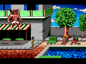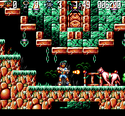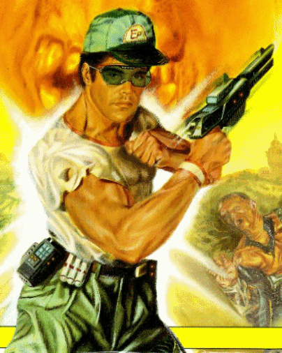 Man, would you look at that. Awesome shades, matching green cap and shorts, sweet utility belt, ripped to the bone and a mean laser gun. Designer Guillaume Dubail should be given a medal cause there is no way anyone will ever surpass this character design. He is quite possibly the definition of a real man. This game was the only one Loriciel actively pushed in the American market, making this a European take on an American hero.