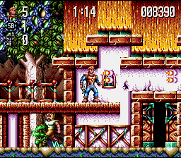 The soundtrack is awesome as expected and features Chris Hülsbeck rocking the SNES sound chip like no other. Apart from the arrangements of older tracks from the first game, there’s all new tracks for the overhead stages and some other segments. The arrangements sounds great and the new tracks are just as good as the old classics. The samples used is a blend of what you heard in Super Turrican and also the guitar samples from Maximum Carnage. With the new art style, the music seems to fit more and gets an extra boost from that.