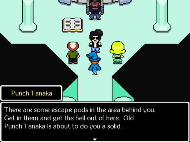 A “cool” bully and leader of a gang of thugs, who has his own theme song. He fights you a few times before joining your party.