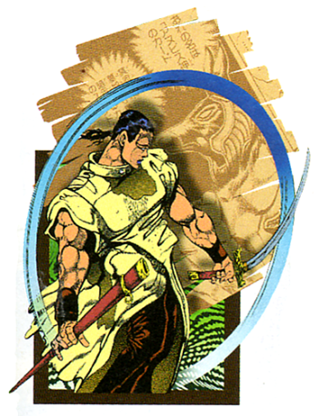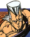 A chivalrous and gallant Frenchman, Polnareff joins Jotaro and the rest of the Stardust Crusaders to find the man who killed his sister. He comes complete with a Vanilla Ice haircut, and was also the inspiration for the SNK King of Fighters character Benimaru.