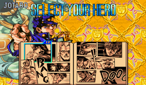 The first JoJo game is an impressive debut, introducing the gorgeous visual style and animation that the series would be known for. Capcom did a great job of capturing the source material perfectly. From the very start with the voice acting of Jotaro (provided by Kiyoyuki Yanada) and the character select screen depicted as a manga panel, the game reeks of authenticity towards the source material.