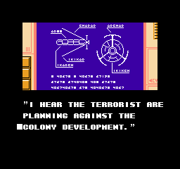 Journey to Silius begins on a dire note that is actually illustrated in a bold cutscene at the beginning of the game, though the manual further elaborates on the backstory. In the year 0373 of the new space age, world overpopulation beckons the creation of space colonies so people can emigrate to them. Jay McCray is the son of a scientist working on colony #428 in the Silius Solar System (SSS), and Jay aspires to someday become a scientist like his dear old dad. Unfortunately, the SSS colony is obliterated in a cataclysmic explosion, and all known research is lost along with the lives of many, including Jay’s father. A grieving Jay finds a disk in his father’s room which tells him about terrorists who are likely behind the horrible destruction of the SSS colony. Full of solemnity and anger, Jay decides to take the fight to the terrorists and see to it that the SSS colony can be rebuilt after all opposing forces have been crushed.