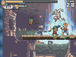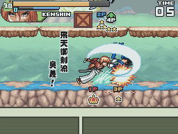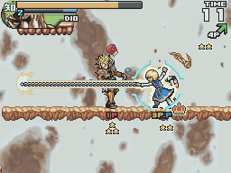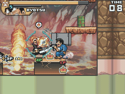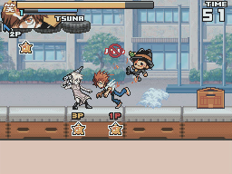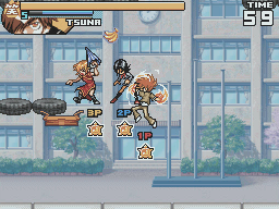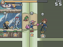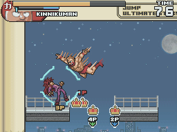The game runs more slowly than its predecessor. To compensate for this all characters can perform a short dash. Strangely, it also removes the dashing attack that all characters could perform in Super Stars. Instead there are now two different attacks that can be done from a blocking position. In Super Stars, the attacks from block dealt a lot of knockback. In Ultimate Stars, one attack breaks enemy guard while the other forces them to switch characters on a successful hit.
