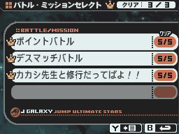 Jump Super Stars already included a few features to make deck making more convenient. The player could unlock premade decks and filter the Koma list according to series, size, type, and other attributes. Ultimate Stars improves on this a little; it also allows Koma to be set to L and R, so that they can be activated without use of the touchscreen. While you can send copies of your decks with friends in Super Stars, Ultimate Stars adds the ability to download the decks of online opponents.