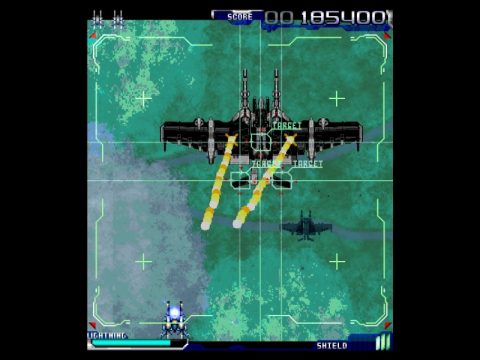 The weapons’ description might seem simple enough, but there’s a fascinating amount of depth to it – for example, the Lock-On Thunder might be charged faster by holding down its button, but this prevents the player from firing – releasing the button means launching the attack, and pressing the other button means launching the attack and firing the Thunder Sword. Since enemies might attack from both the foreground and the background, and the bullet pattern is often too tight to simply maneuver around – the opposition also frequently employ the RayStorm-esque homing lasers – careful juggling of Lock-On and Sword with pauses to recharge their power meter will be required in order to safely pass each stage. This is further complicated by the scoring system – destroying enemies with the pulse laser or the Thunder Sword gives just the base amount of points, while enemies destroyed by the Lock-On Thunder have their score value multiplied by the amount of individual bolts launched, so if it was used at full charge, every enemy destroyed with it will bear a x16 multiplier. Predictably, every boss enemy has a phase when it’ll retreat into the background, allowing for a small window of vulnerability to the highest-scoring weapon.