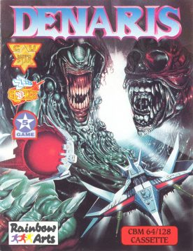 The game’s box art depicting the DS-H75 Eagle fighter, the force pod, and two alien xenomorphs is a terrific example of the blatant ripping off of movie covers that was so prevalent in the 1980s (in this case from the 1986 Aliens movie). Despite the legal issues with Activision, Rainbow Arts apparently didn’t see any problem in reusing the Katakis box art for Denaris; only the game title on the cover was changed.