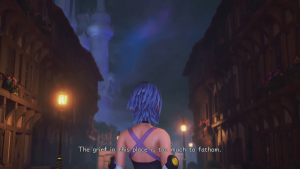 Kingdom Hearts 0.2-A Fragmentary Passage- is an odd duck even beyond its ridiculous title. Released as part of the Kingdom Hearts 2.8 HD collection, it contains a short scenario starring Aqua after the events of Birth by Sleep‘s “Secret Episode,” possibly stitched together out of ideas left over from the dead “Birth by Sleep vol 2”. Mechanically, the game serves as a sort of demo for Kingdom Hearts 3 with unique story and levels, and sure enough, there are parts in Kingdom Hearts 3 where you can play as Aqua, virtually unmodified from this prototype. But the game features a few elements of its own, even outside of mechanics updated in the finalized Kingdom Hearts 3.