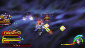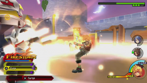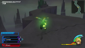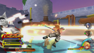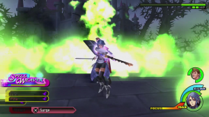 Birth by Sleep is the first of three titles in the Kingdom Hearts series to use the Command Deck system, and a lot of what we’re going to discuss here applies to later games as well. Instead of having a confounding library of standard attacks, abilities, and a separate magic system, Birth by Sleep has a confounding library of attacks and magic combined, each of which are arranged into a customizable “deck”. Each “Command” suffers from cooldown after use. Spells resemble the attacks from previous entries, while special attacks can move the character around with dashes and overhead strikes. There are also large, screen-clearing displays of pyrotechnics with larger cooldowns to match.